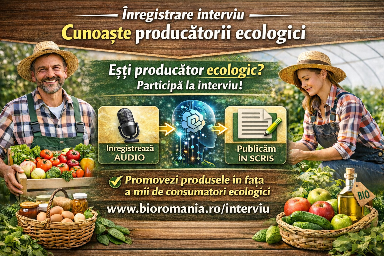 Ești producător ecologic? Te invităm să răspunzi în scris sau audio la câteva întrebări care vi se aplică sau la care doriți să răspundeți din seturile de întrebări de mai jos.